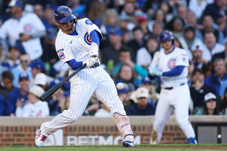 米大リーグのプレーオフは8日、各地で地区シリーズが行われ、ナ・リーグ第3戦でカブスの鈴木はブルワーズ戦に4番右翼で出場し、3回に二塁打を放って4打数1安打。チームは4―3で勝ち、1勝2敗とした=シカゴ 【AFP時事】