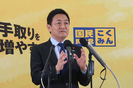 国民民主党の玉木雄一郎代表は28日の記者会見で、立憲民主党の枝野幸男元代表が安全保障関連法に「違憲部分はない」と発言したことを評価した=同日、国会内 【時事通信社】