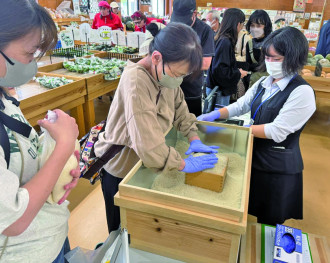 その後、それぞれの素材が調理された押し寿司やそばを試食。参加者から感嘆の声が上がった。小川さんはこれまでの試行錯誤の経緯に触れ、「本物のこだわりには、それ相応の努力と勉強が必要。成功した時には何物にも代えがたい感動がある」と話した。