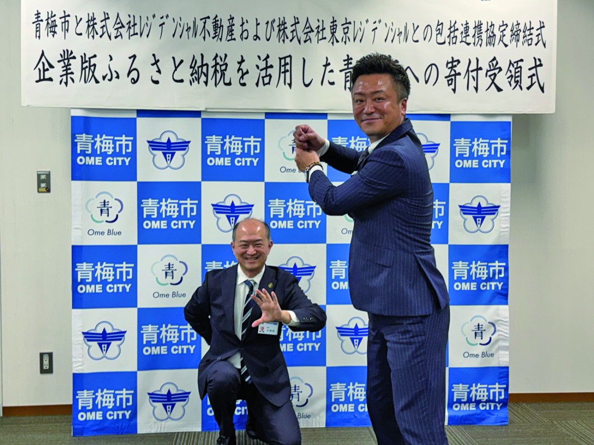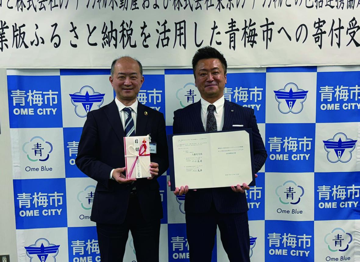 当日の模擬店などによる売上と募金などで集まった寄付金が、市川二三男実行委員長から志田保夫羽村市社会福祉協議会会長に手渡された。