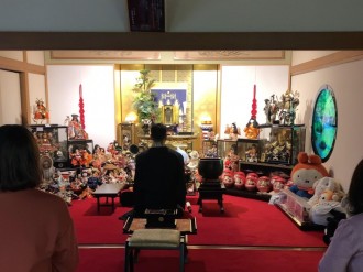 あきる野市原小宮にある蕃椒(とうがらし)地蔵そばの原小宮会館(あきる野市原小宮)で10月12日、人形供養が行われた。原小宮地蔵講が人形を募り、供養した。