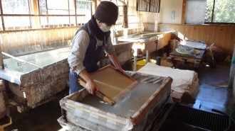 都立羽村特別支援学校(羽村市五ノ神)の児童・生徒が作業学習の一環として取り組んでいるリサイクル処理済み牛乳パックが10月6日、あおぞら保育園(羽村市神明台1)に贈られた。卒園証書などで活用される。