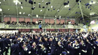 日本航空大学校と日本航空高校石川校の卒業式が2月7日、避難先の東京青梅キャンパス(青梅市長淵2)で開催された。